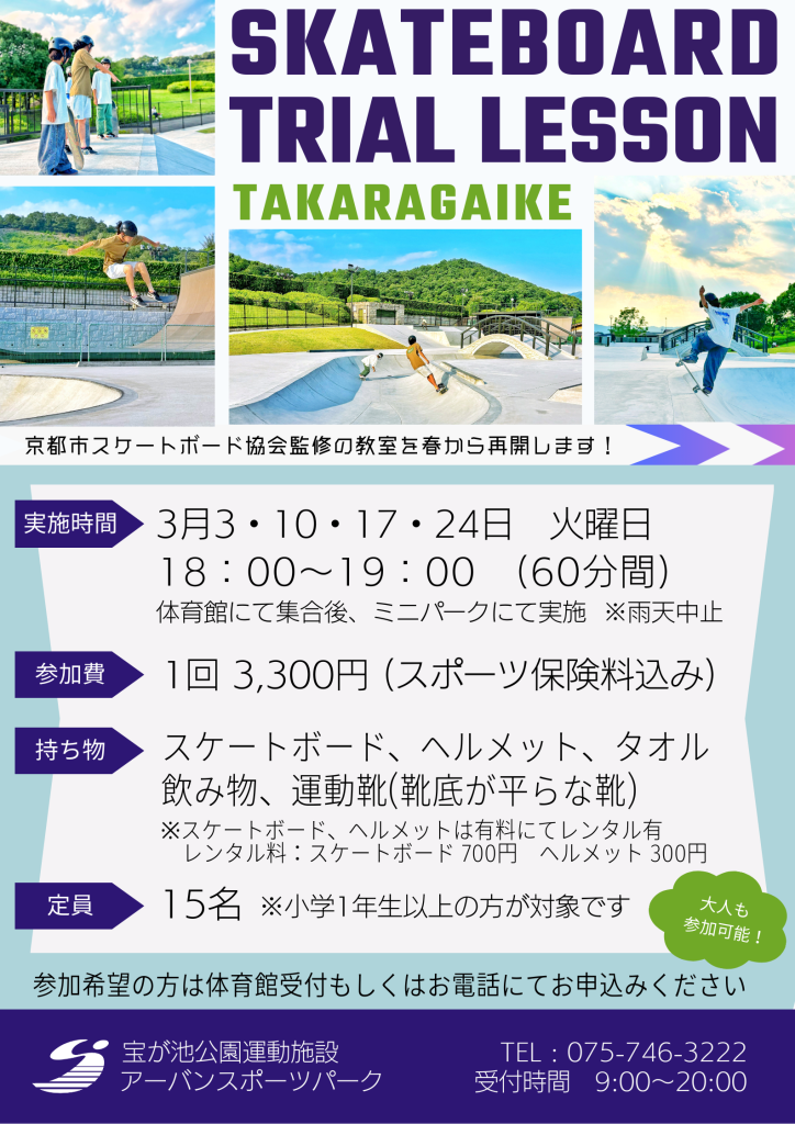 【教室】スケートボード体験教室 3月より再開いたします!
